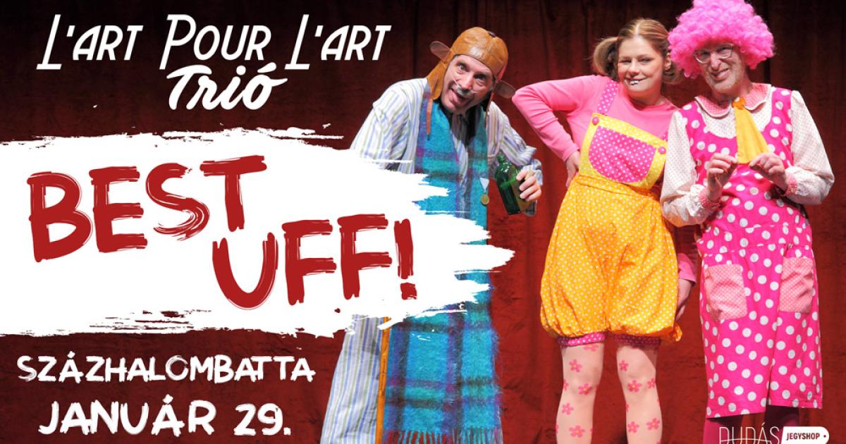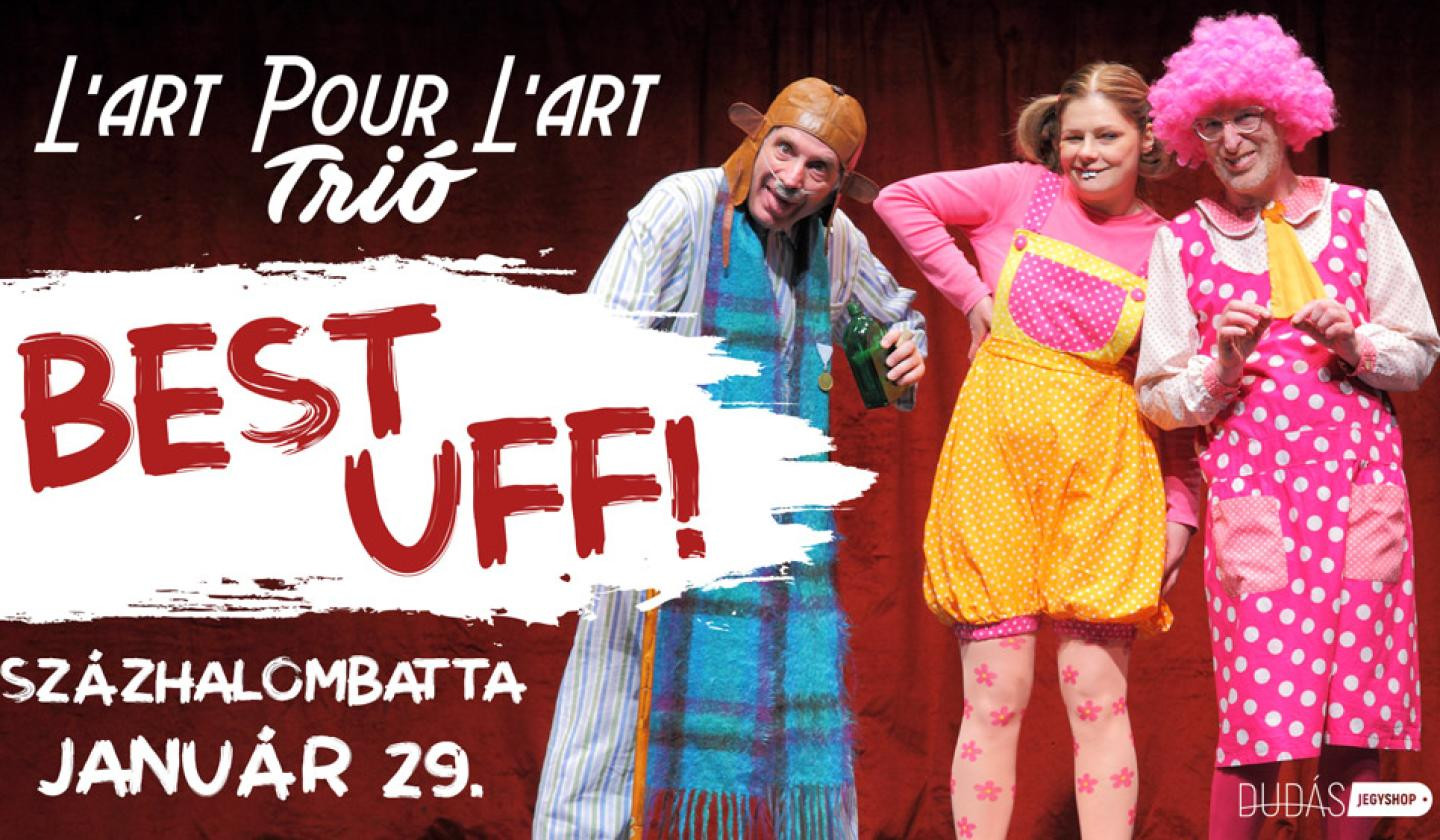 A L’art pour l’art Légitársaság különleges trió formációja – a legendás Dolák-Saly Róbert, a zseniális Szászi Móni és a megunhatatlan Pethő Zsolt – várja Önöket a fedélzeten. A Best Uff! című előadás nem csupán egy válogatás: ez egy sűrített, 100%-os párlat az elmúlt évtizedek legemlékezetesebb, legviccesebb és legszürreálisabb pillanataiból.